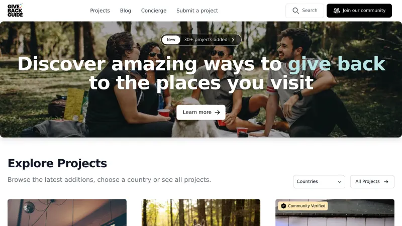 - Give Back Guide - A platform that connects travellers with projects and experiences that have a positive impact on people, places, and the planet. Their goal is to make it easy for travellers to find and support local projects in their destinations that align with their values.
