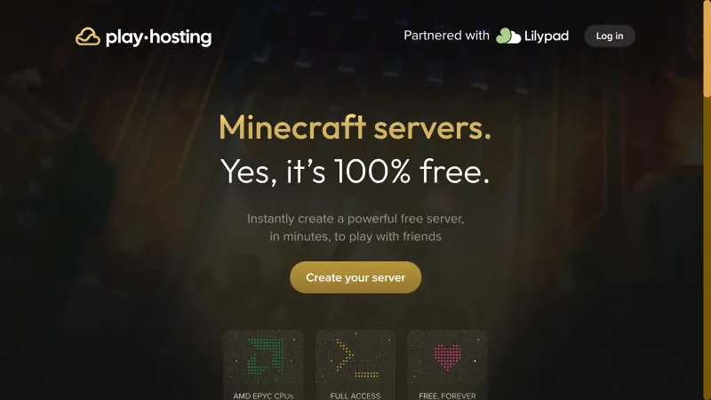 Play Hosting | Minecraft Servers, 100% Free, Forever