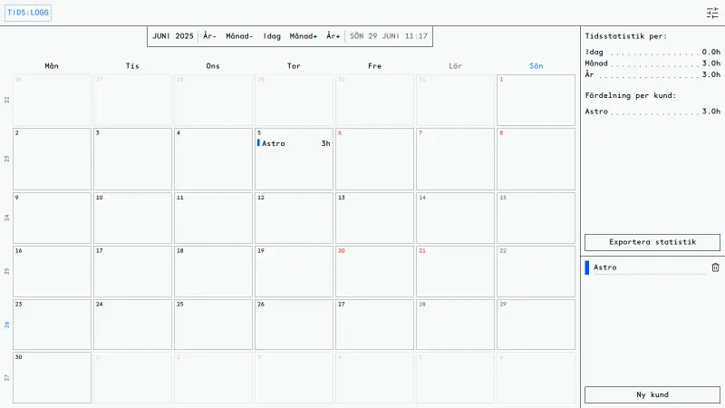- TIDS:LOGG - Keep track of the time you spend with Astro! (And learn a little Swedish at the same time?) A Swedish time-tracking site built with Supabase.