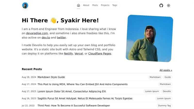 Devolio - Minimalist Starter for Developer Blog & Portfolio Website